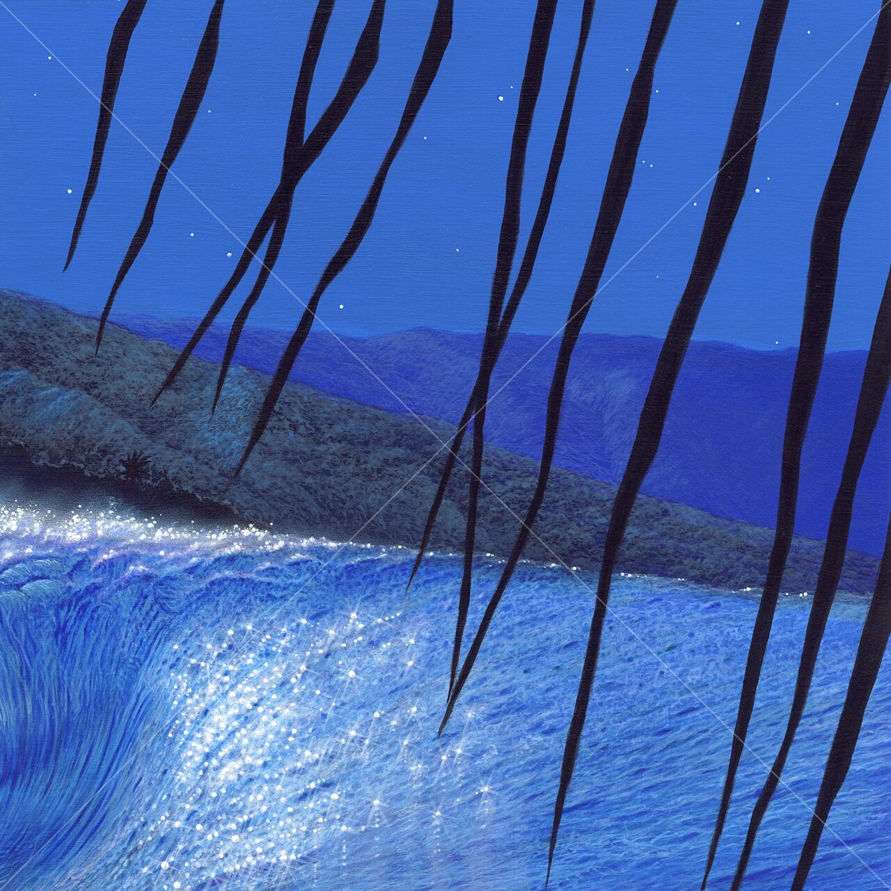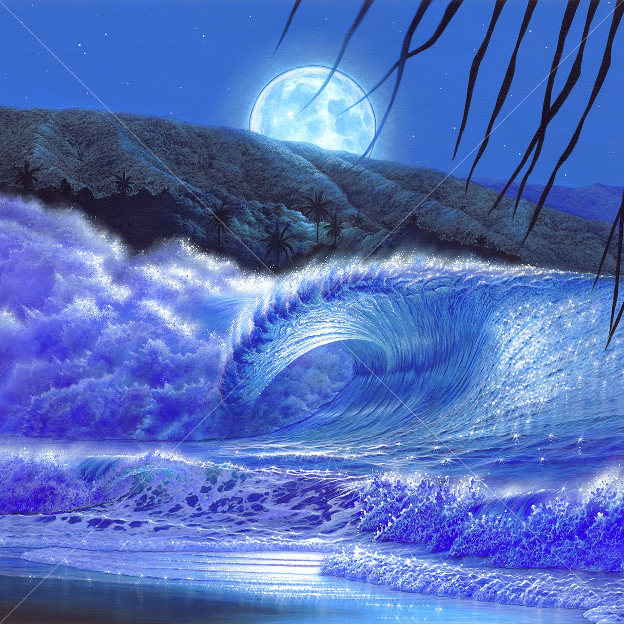 夜の月明かりの下で光り輝く、パーフェクトウェーブ。
