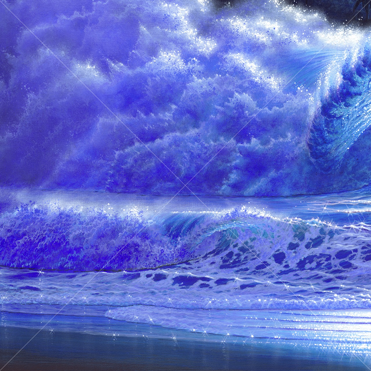 透き通った美しさと力を持つ大波を描きました。